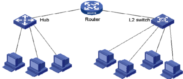 139. XYZ 公司网络如图所示。其中Router 上没有配置任何逻辑接口;所有的主机之间均可以正常通信。则此网络中有___  __个广播域。(请填写阿拉伯数字)
