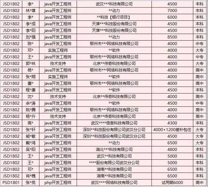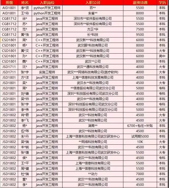 武汉某知名培训机构,2018年上半年来就业资料显示,本科、高职高专毕业生就业薪资普遍在4K~6K,且都是就业于IT行业。