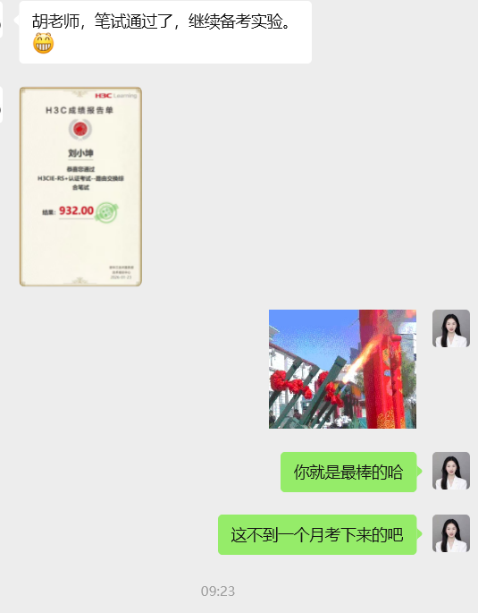 选择润天新华三认证,多一个靠谱理由备受学员认可的H3CIE-RS+面试辅导,用真实上岸案例说话,帮每一位备考者突破难关、顺利通关。 近日,我们收到了吕同学的好消息:作为一名中年...