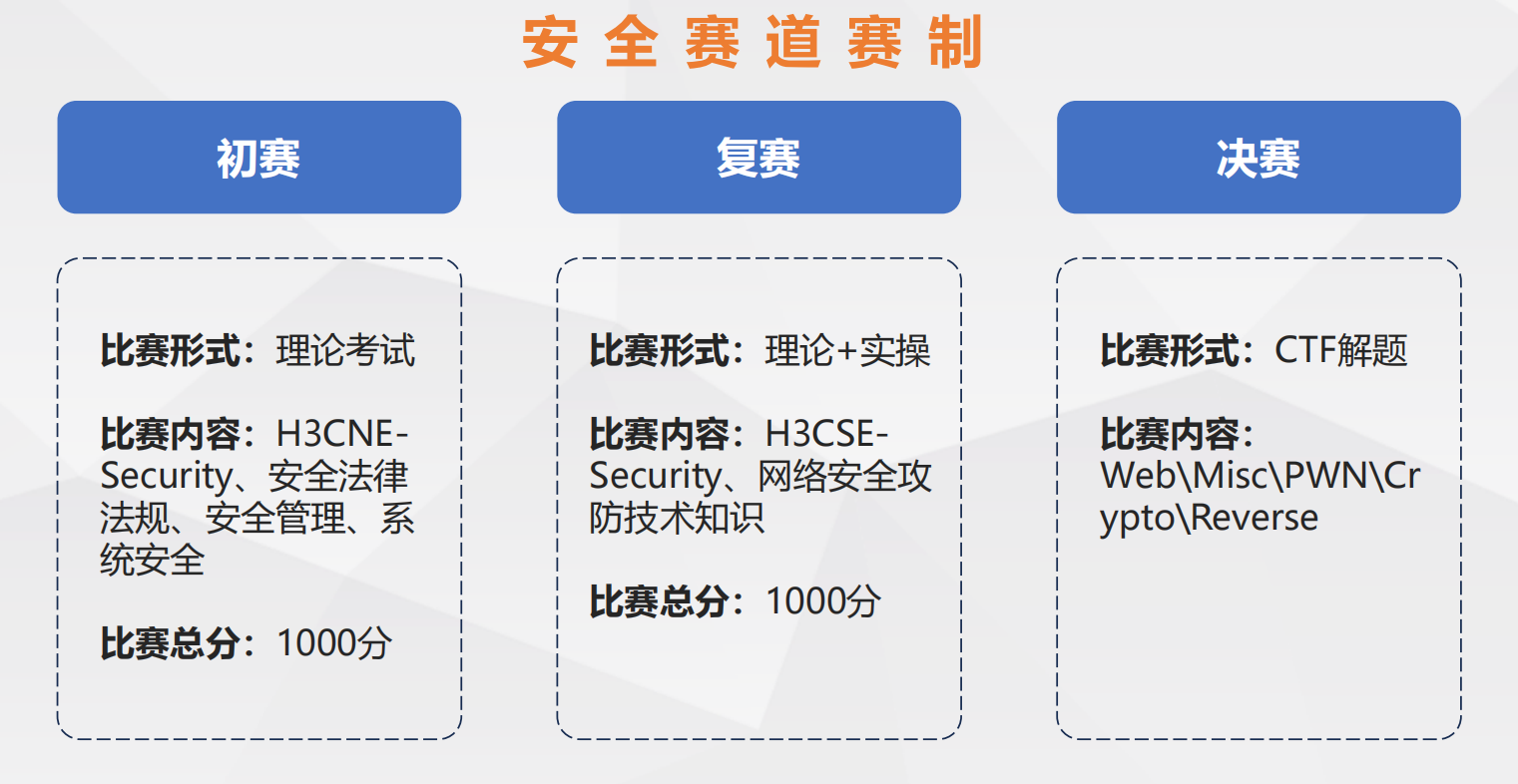 网络安全赛道:3人团队赛,不分组别。赛程包含省预赛(理论)、省复赛(理论+实操)、全国决赛(CTF解题对抗)。