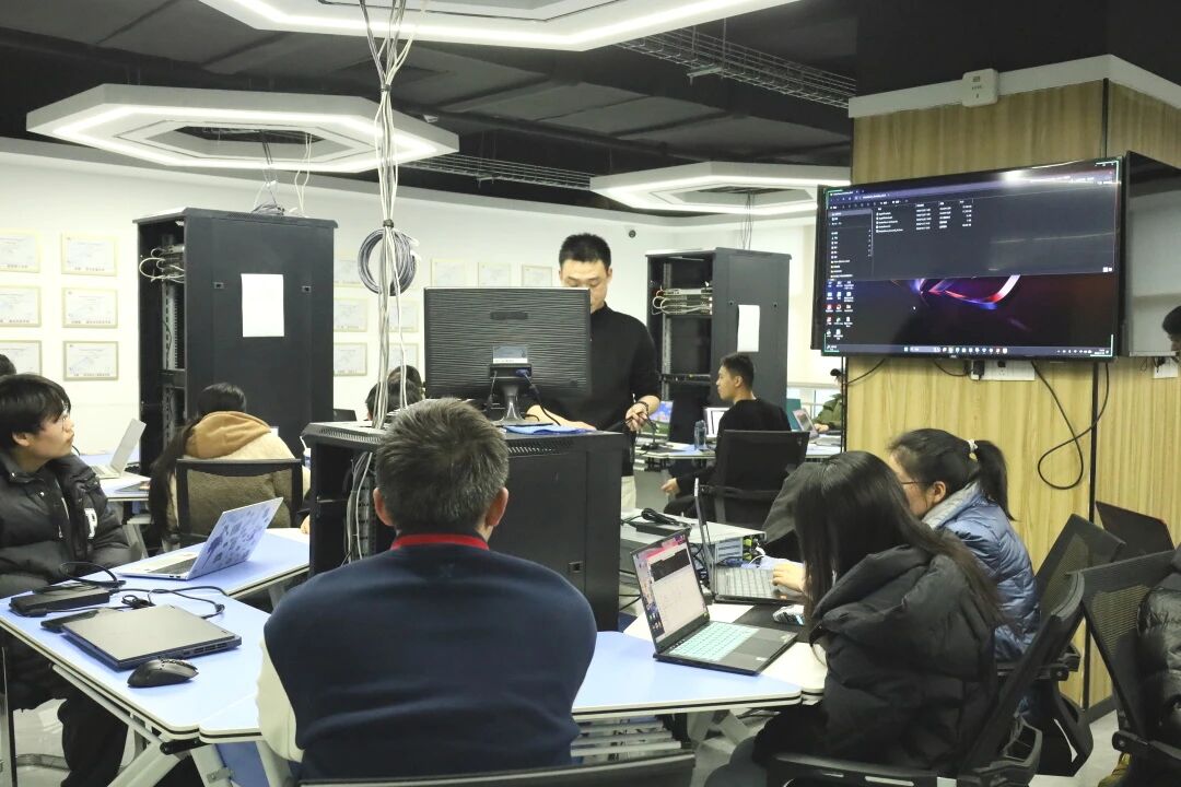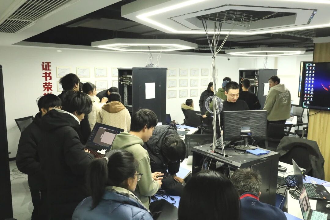 当常老师带着冬令营学员们走进布满真机设备的实训室,冬天的寒意瞬间被点燃。键盘的敲击声、设备的启动声、攻克难题时的讨论声……汇成了今天最热的浪潮。