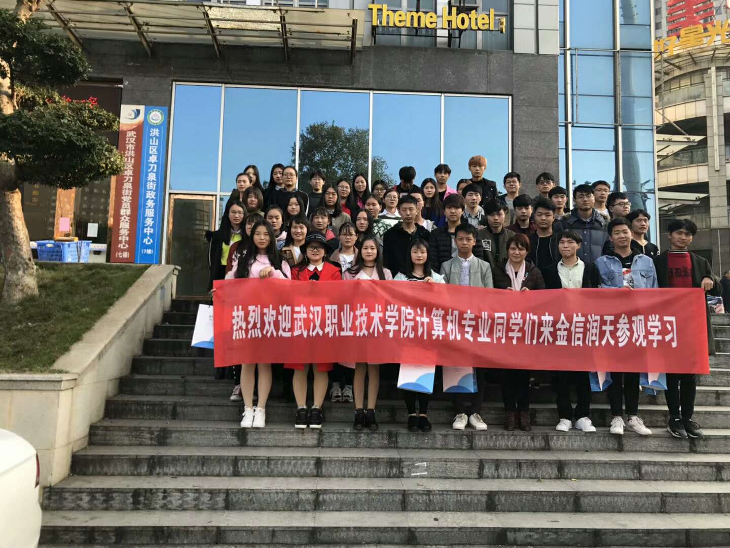 热烈欢迎武汉职业技术学院计算机学院师生一起来金信润天武汉分公司参观学习,参观自己将来的工作办公环境,了解IT行业目前现状以及IT行业新技术发展趋势,如何做大学生职业规划,如何找到一份好工作