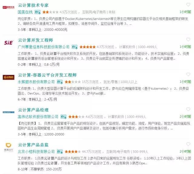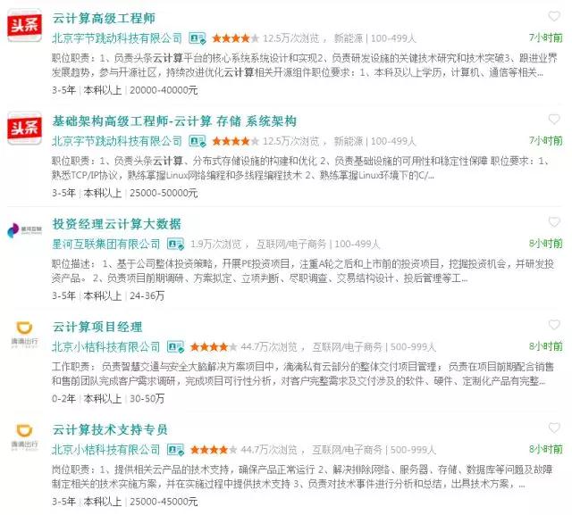 相关云计算企业加大对核心技术的投入,提高对客户的服务,无论从技术层面,运营商层面还是集成与服务提供层面,人才需求巨大。