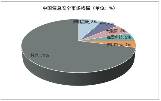 从市场格局上看,中国信息安全市场呈现高度分散的特点。与全球成熟的信息安全市场相比,中国信息安全产业的行业集中度明显偏低。前五名厂商的市场占有率合计为29%左右,而全球市场为44%左右,未来国内市场集中度提升是大概率事件。