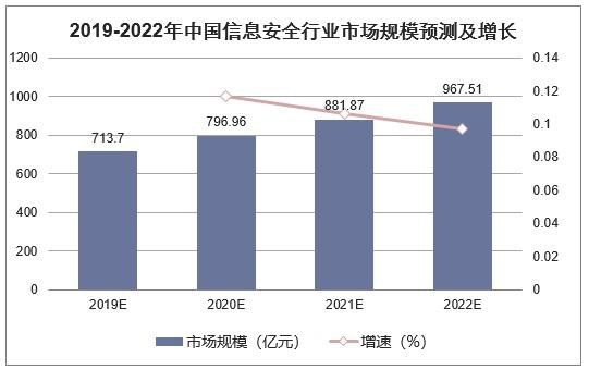 中国网络安全市场发展速度相比全球安全市场更为迅猛。CCID数据显示,2018年中国网络信息安全市场整体规模达到了495亿元,增长率约为21%,该增速远超全球网络信息安全市场规模增长速度。随着数字经济的发展,5G技术、云计算和物联网建设的逐步推进,网络信息安全作为数字经济发展的必要保障,其投入将持续增加。预计未来3-5年,行业增速加快,到2022年,中国网络信息安全市场规模有望突破1000亿元。
