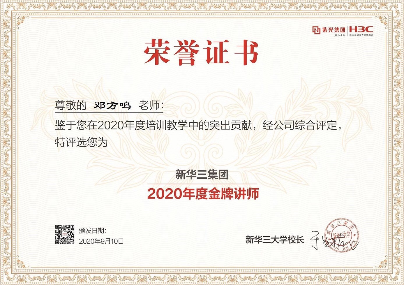 恭喜邓老师获得新华三集团“金牌讲师”称号