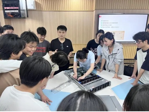 实训课程精心分组,五组学生每组五人,共同负责一台真实的服务器。在指导老师的引导下,学生们首先对服务器硬件结构展开深入探究,通过拆解与组装,亲手触摸计算机硬件的细节,从螺丝到主板,从硬盘到内存条,每一个部件都承载着知识与技术的重量。这一过程不仅让学生们获得了对硬件的全面认知,更让他们深刻领略到云计算基础设施的关键作用。