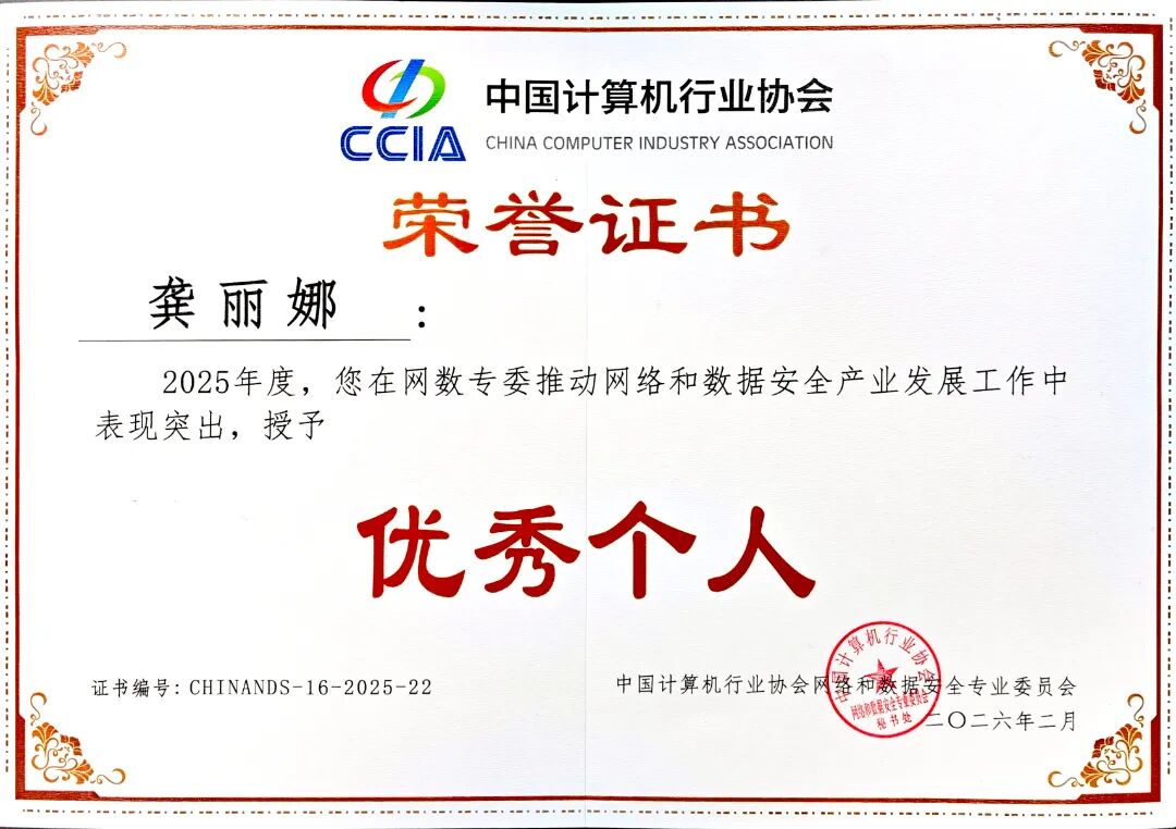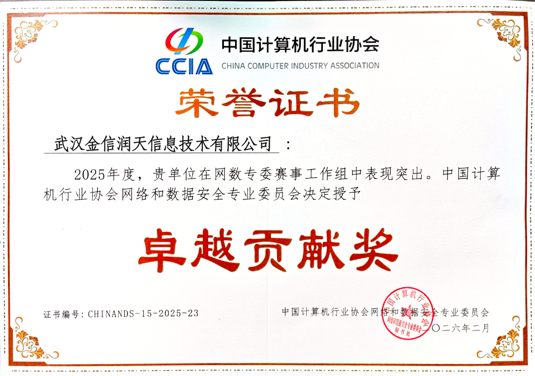 武汉金信润天信息技术有限公司作为行业核心单位受邀参会,并凭借其在网络与数据安全领域突出的技术实力、卓越的赛事运营与系统化人才培养体系,荣获大会颁发的 “卓越贡献奖” ,公司代表龚丽娜女士同时获评 “优秀个人奖” 。
