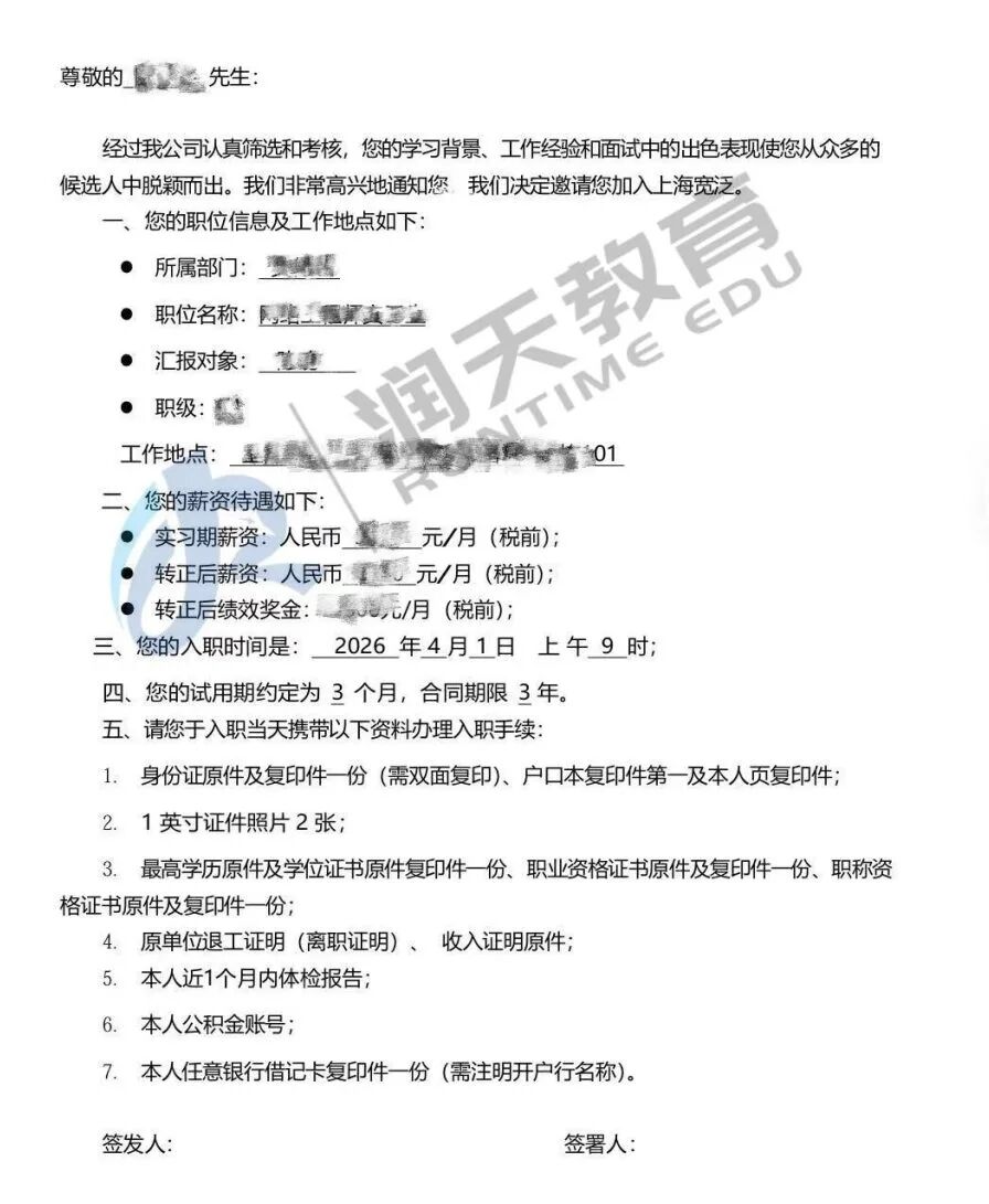教育的价值,远不止于一份offer。最让我们欣慰的,是在这段奋斗旅程中建立的信任与深厚情谊。正如我们老师与一位刚刚入职的学员的对话那样,学生的成功与感激,是老师们所有辛勤付出最珍贵的回响。这份“亦师亦友”的陪伴与成就彼此的快乐,正是润天教育希望传递的温度。